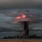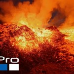Volcano eruption as seen from space.