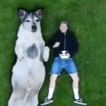 Husky totally confused by new puppy addition.