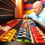 Scraping old wax off surfboards.