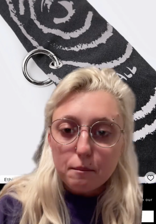 She said, “One of my followers messaged me with this link that Minga London stole my design and put it on a tie, and now they’re selling it on their website. And not only that, but Minga London preaches ethical design, ethical fashion.”