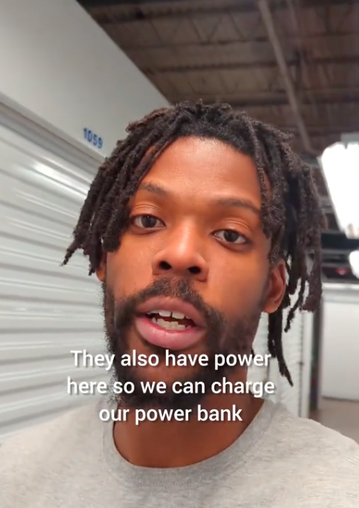 He said that that he can do it all in his storage unit: exercise, use the bathroom, and the place is kept “nice and warm” because it’s climate-controlled.