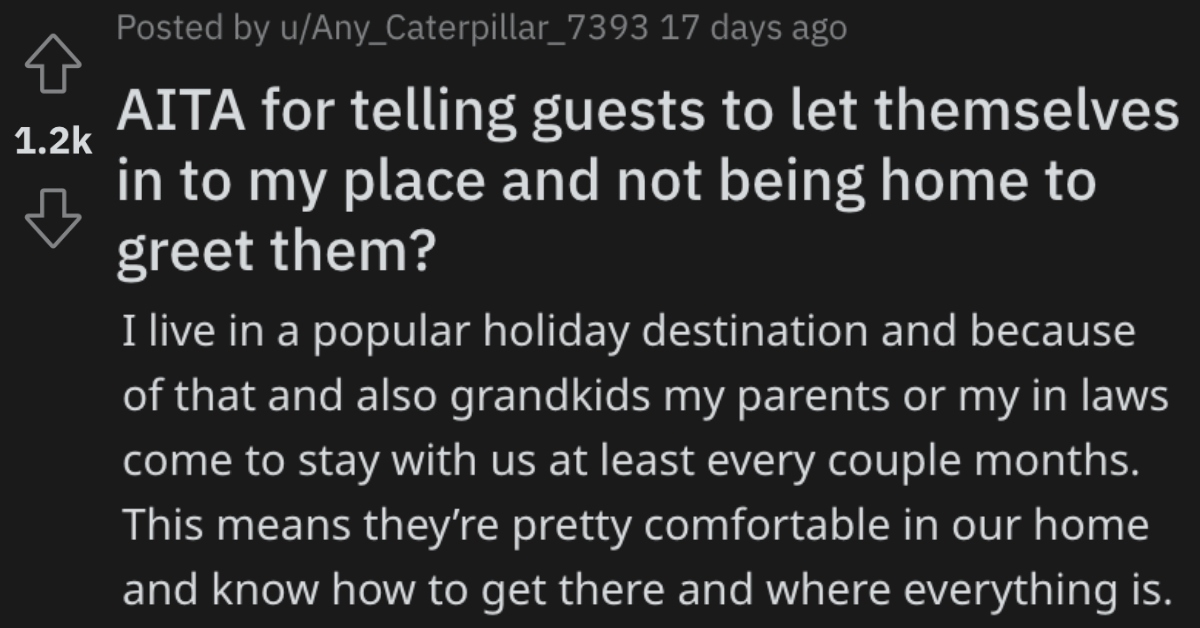 AITA for telling guests to let themselves in to my place and not being home to greet them?