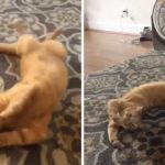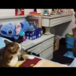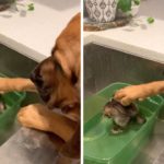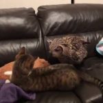Kangaroo joey cleans kitten’s ears