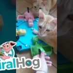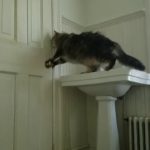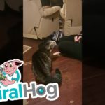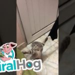 Cat absolutely crushes climbing wall