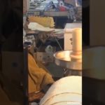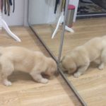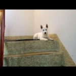 Husky pup’s first time going down stairs