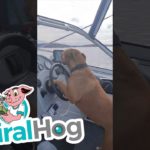 Dog drives boat