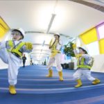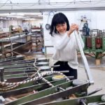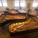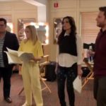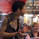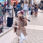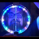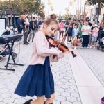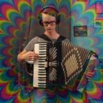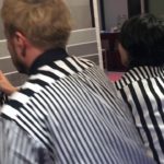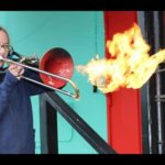 Playing the electric fan “harp.”